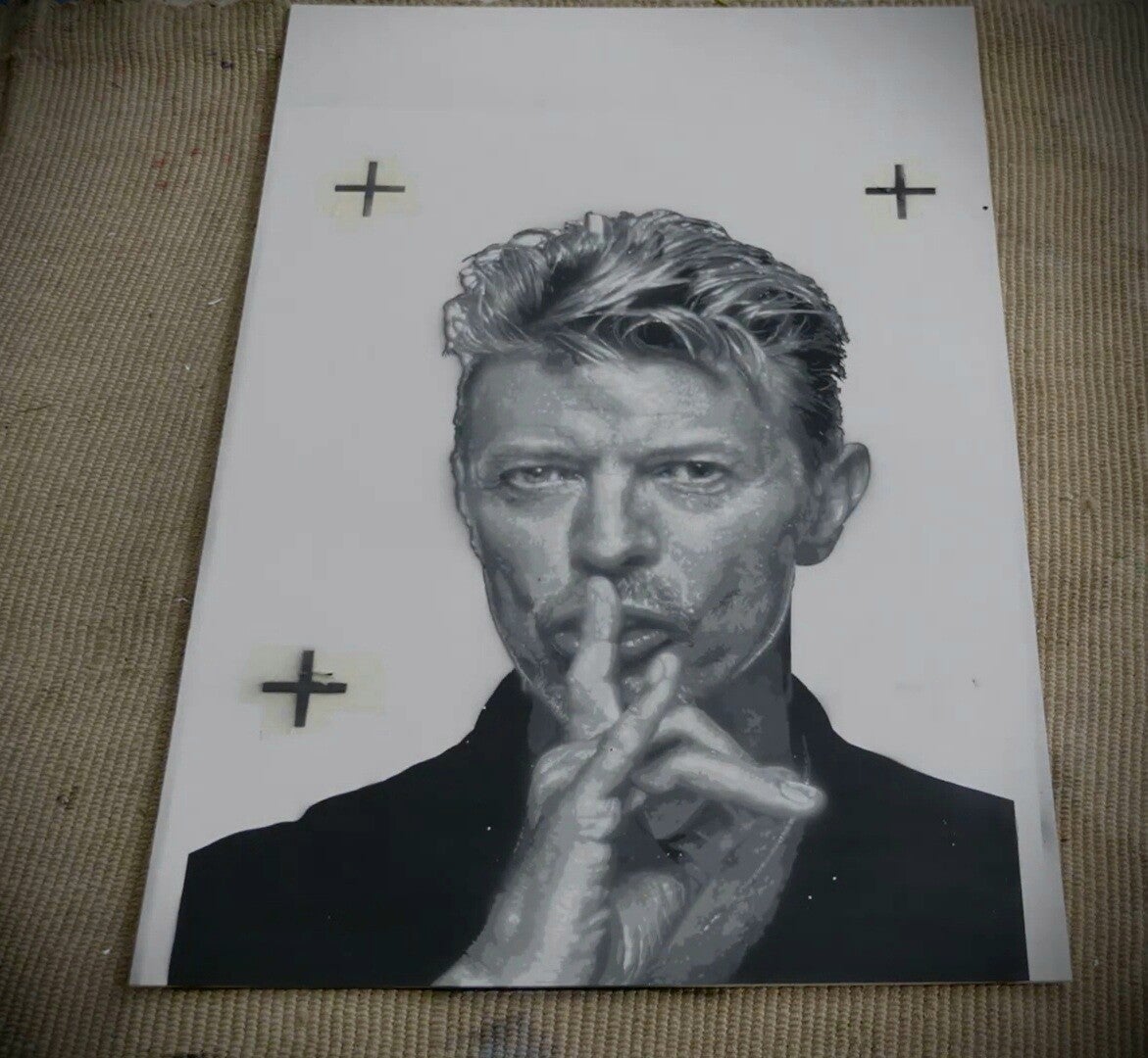 We then use the stencils on any medium requested, from canvases to skateboards.